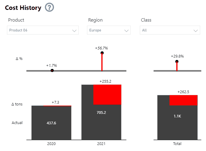 They can also drill into any particular product, region or class to view costs and cost variances over time, to see which product lines need intervention.